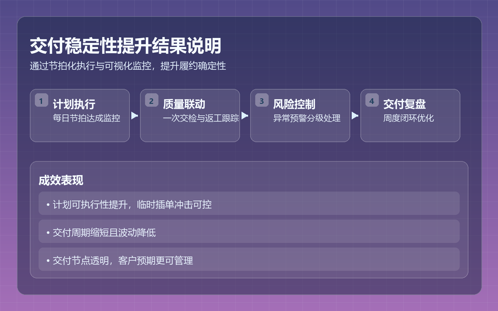 - 配套建立排产节奏、人员协同与过程监控机制。